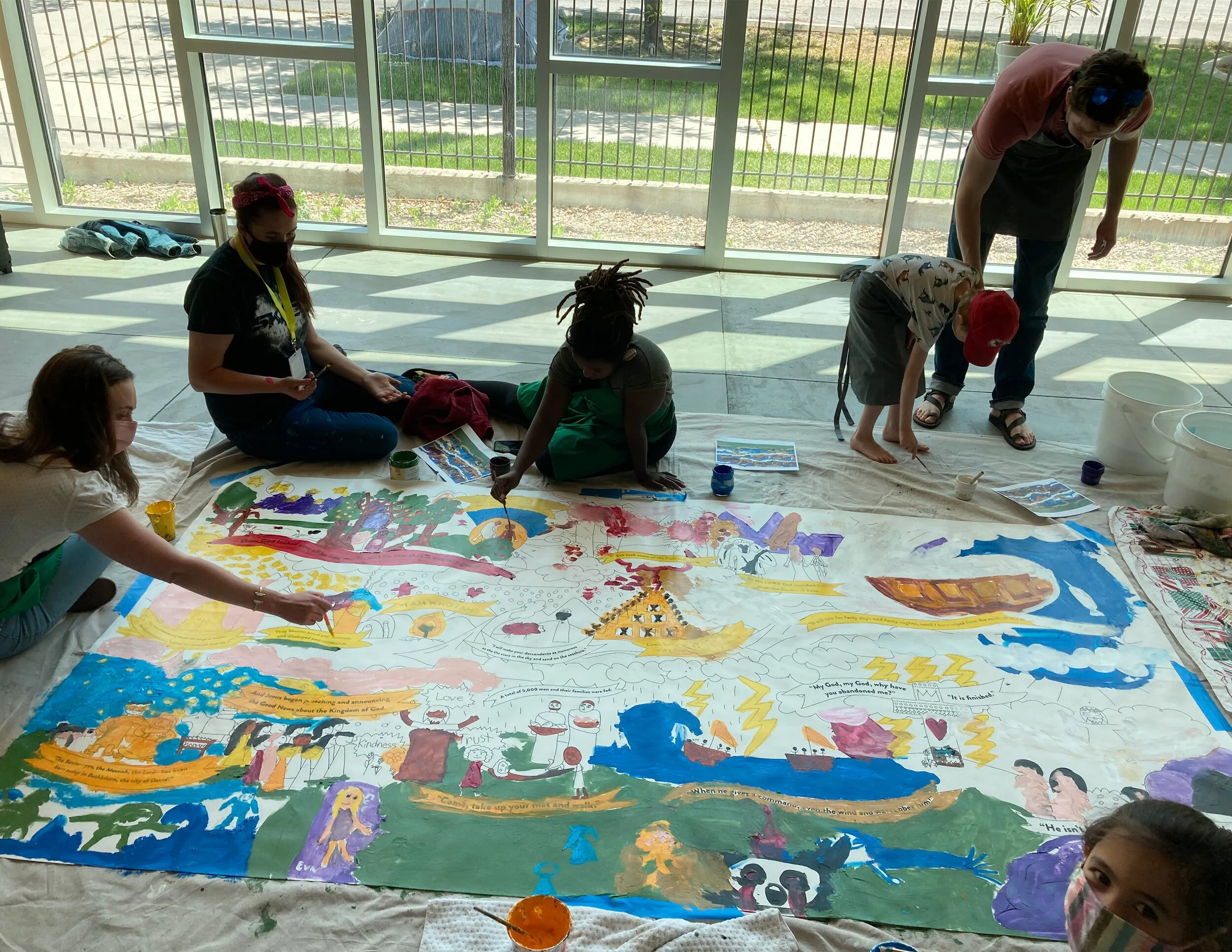 The mural team would like to thank every person who helped for their enthusiasm about this project and involvement in the creation process! We hope that every person involved feels proud of their hard work and confident in their future artistic endeavors. We also pray that this mural connects the members of our community, especially Missio Kids, to the Story of the Bible!